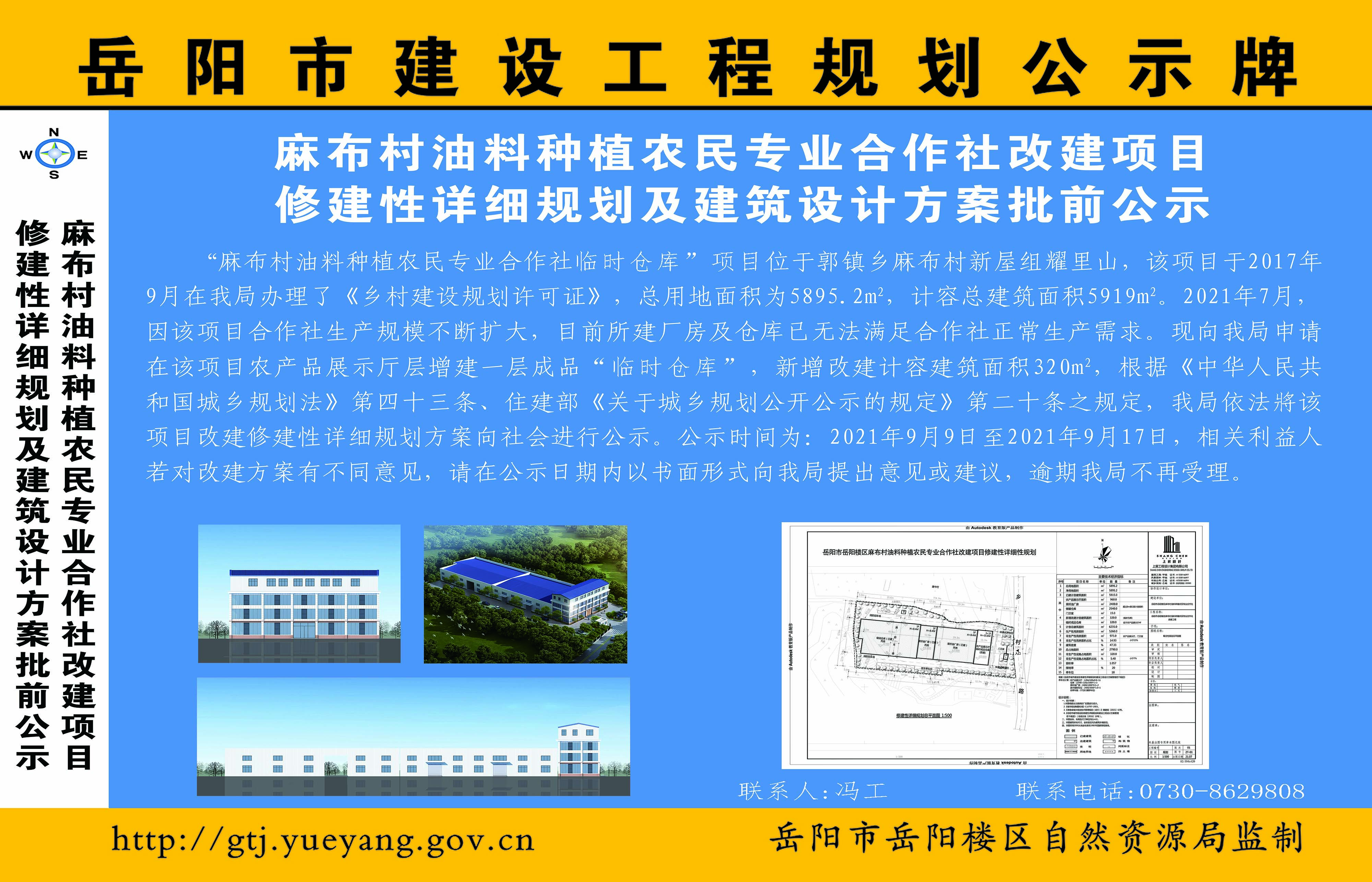 麻布村油料种植农民专业合作社改建项目修建性详细规划及建筑设计方案批前公示