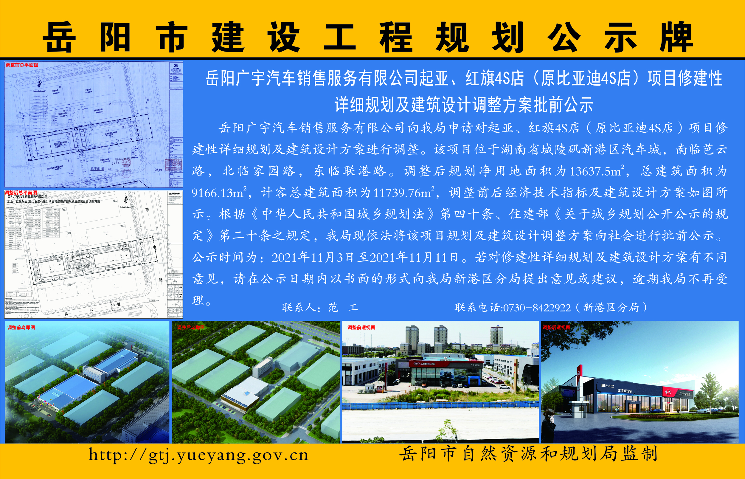 岳阳广宇汽车销售服务有限公司起亚、红旗4S店(原比亚迪4S店)项目修建性详细规划及建筑设计调整方案