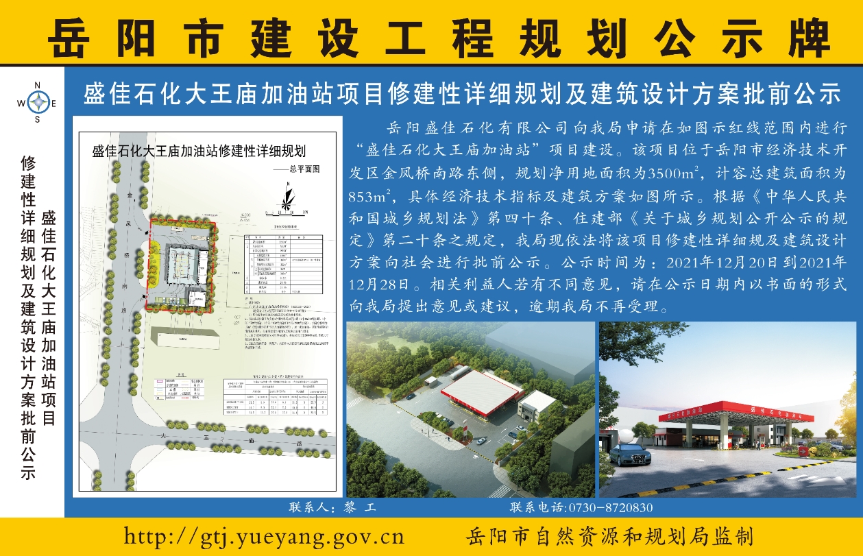 盛佳石化大王庙加油站项目修建性详细规划及建筑设计方案批前公示