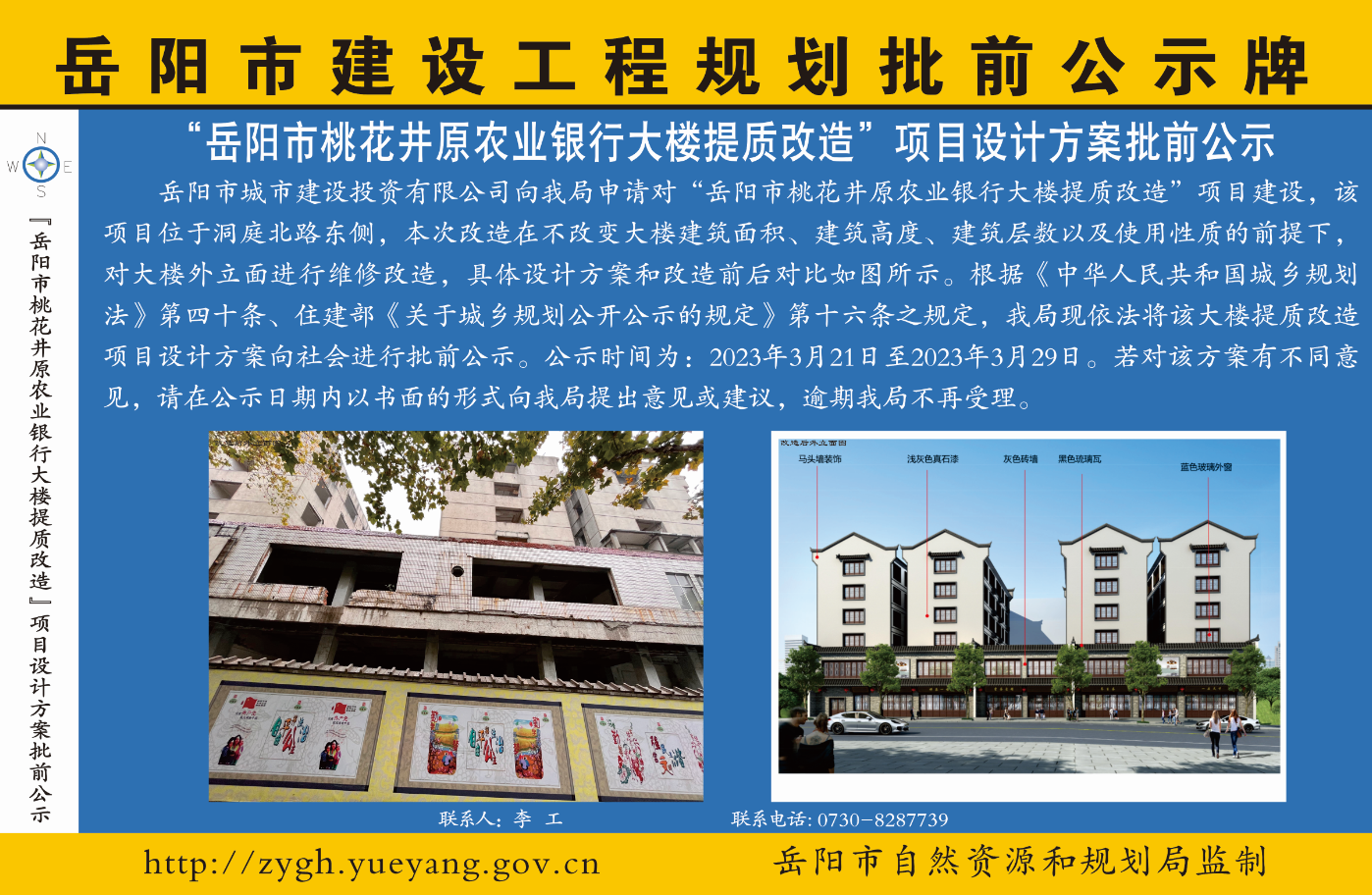 岳阳市桃花井原农业银行大楼提质改造项目批前公示