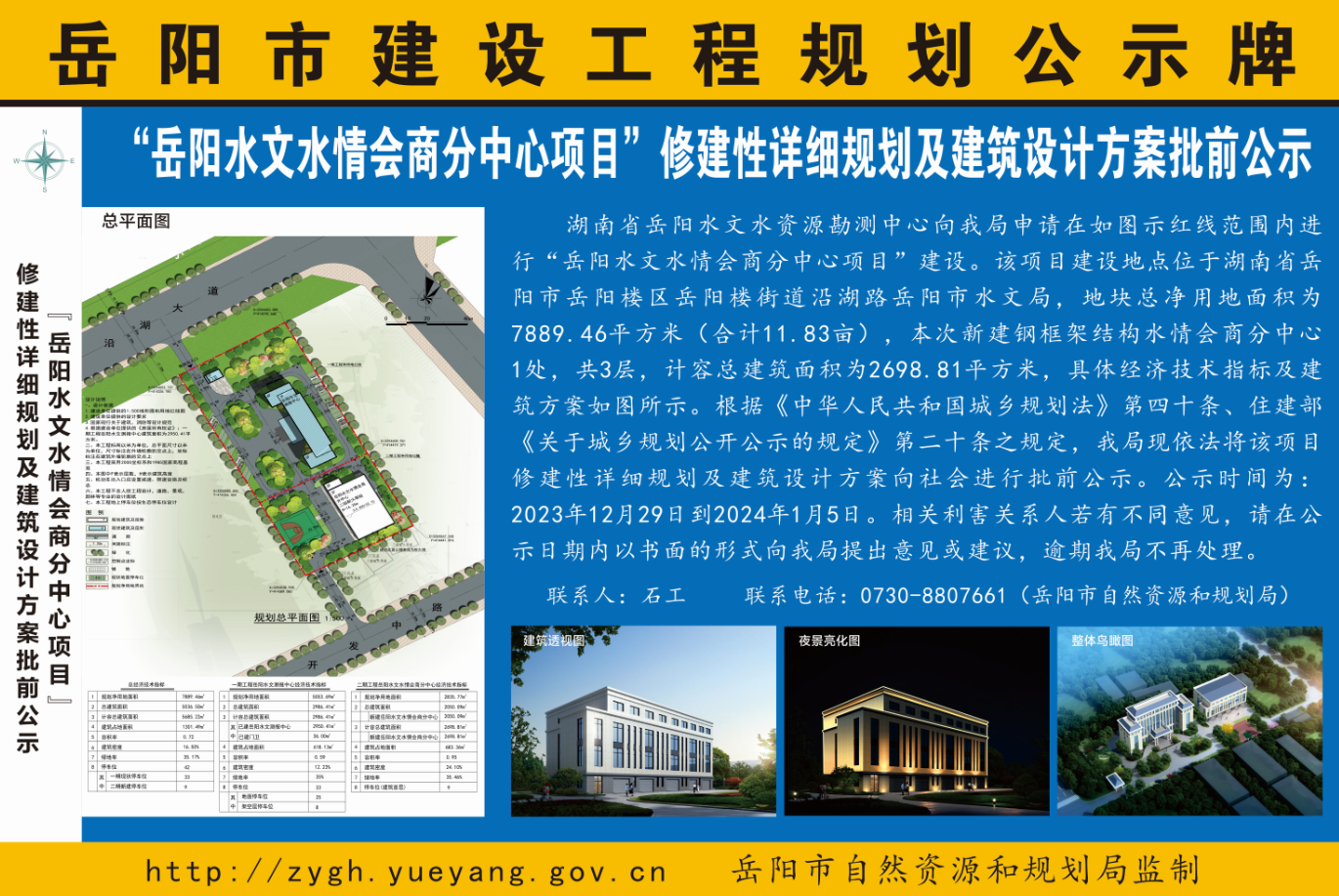 “岳阳水文水情会商中心项目”修建性详细规划及建筑设计方案批前公示