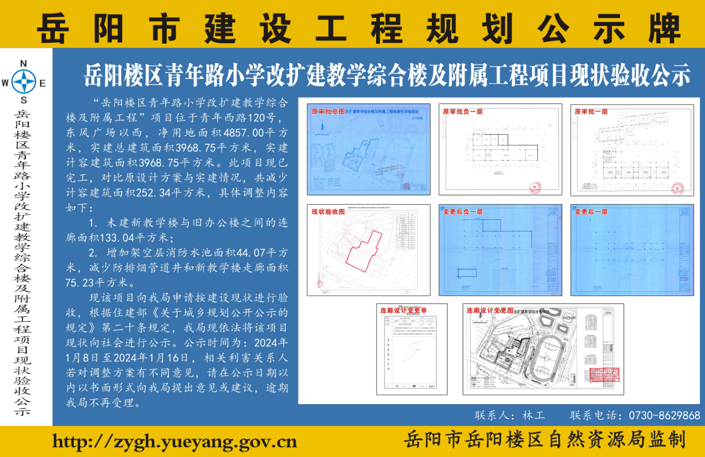 “岳阳楼区青年路小学改扩建教学综合楼及附属工程”项目现状验收公示
