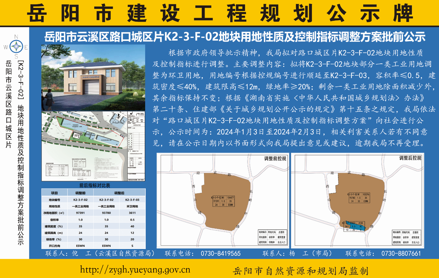 岳阳市云溪区路口城区片区K2-3-F-02地块用地性质及相关指标调整论证调整方案批前公示