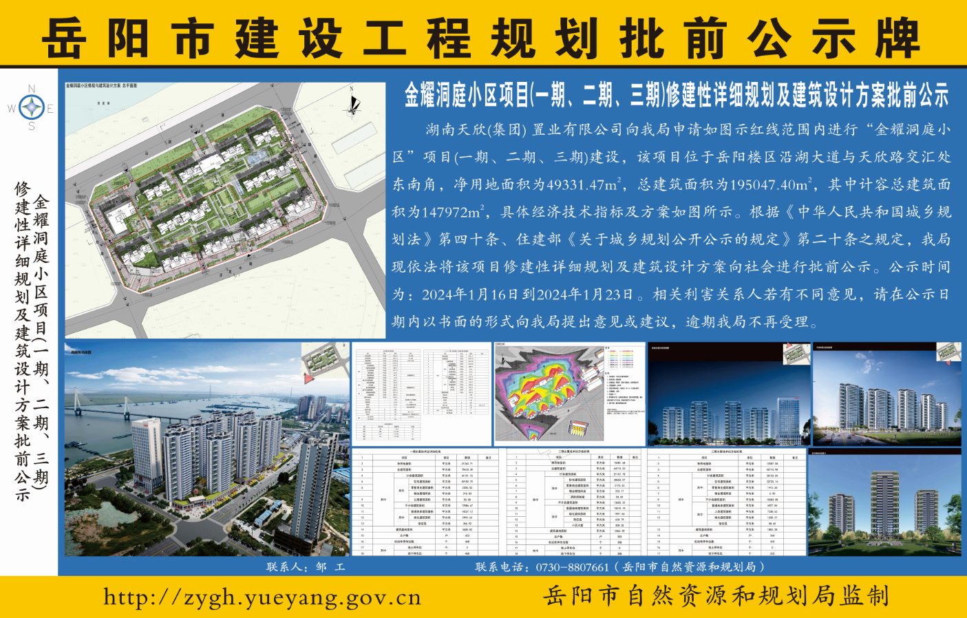 金耀洞庭小区项目(一期、二期、三期)修建性详细规划及建筑设计方案批前公示