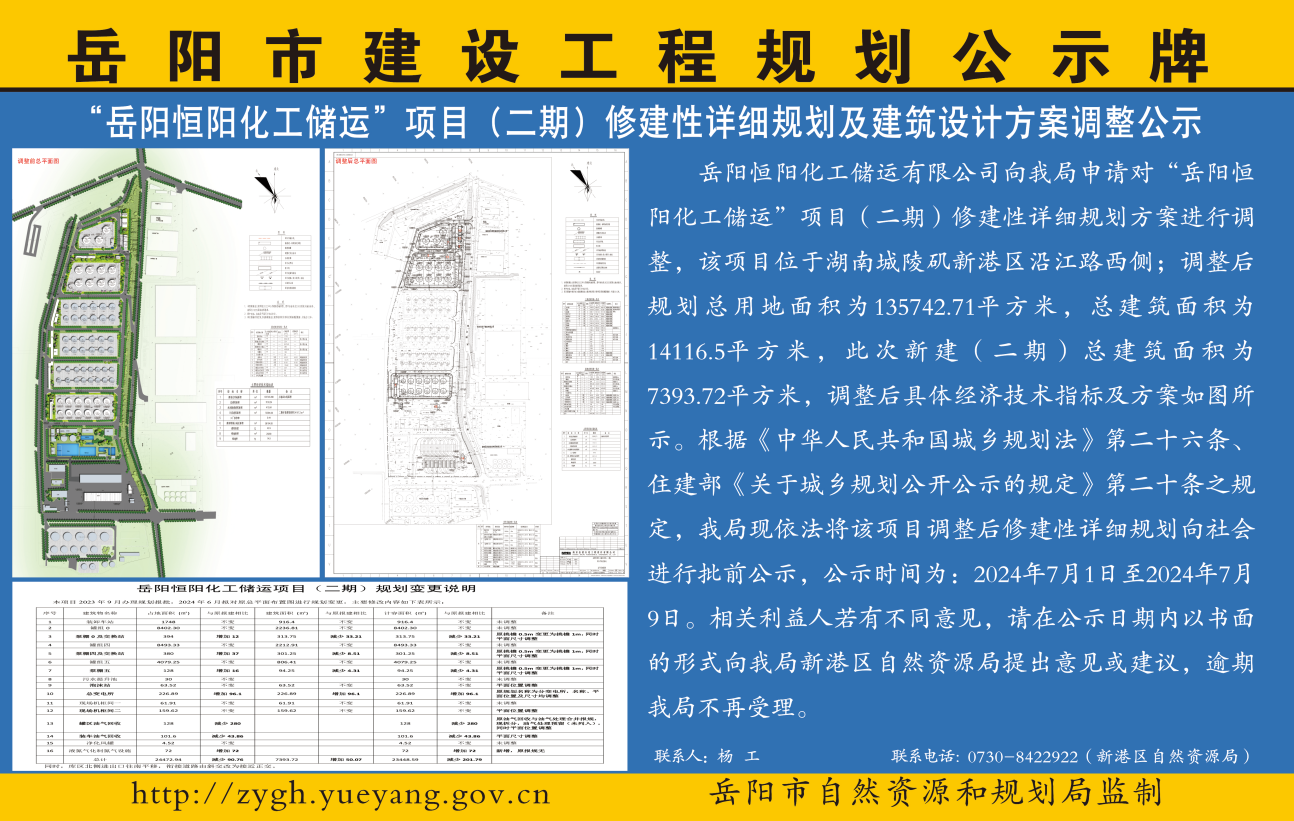 “岳阳恒阳化工储运”项目(二期)修建性详细规划及建筑设计方案调整公示
