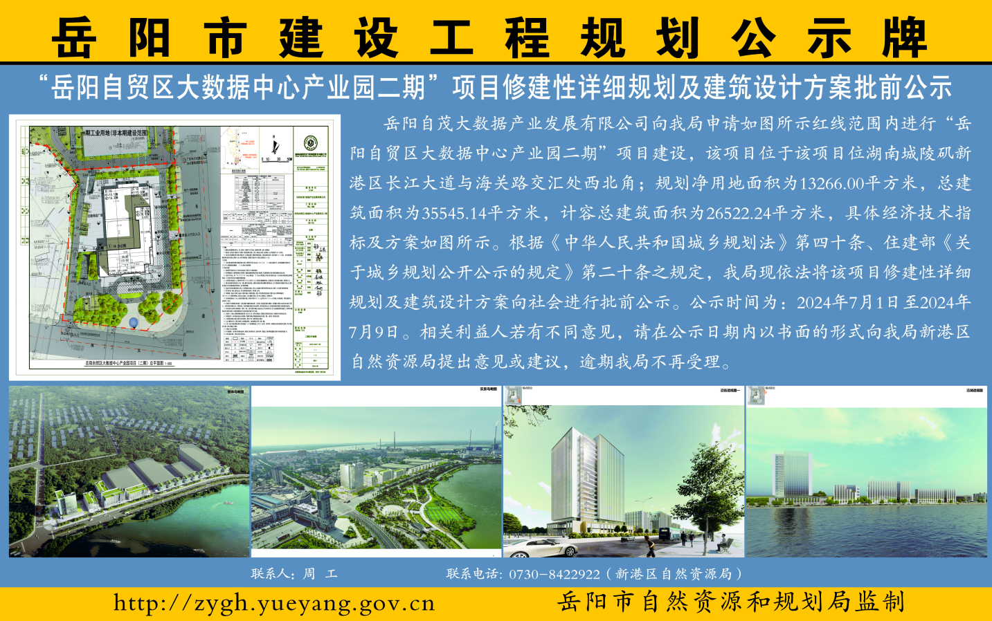 ”岳阳自贸区大数据中心产业园二期“项目修建性详细规划及建筑设计方案批前公示