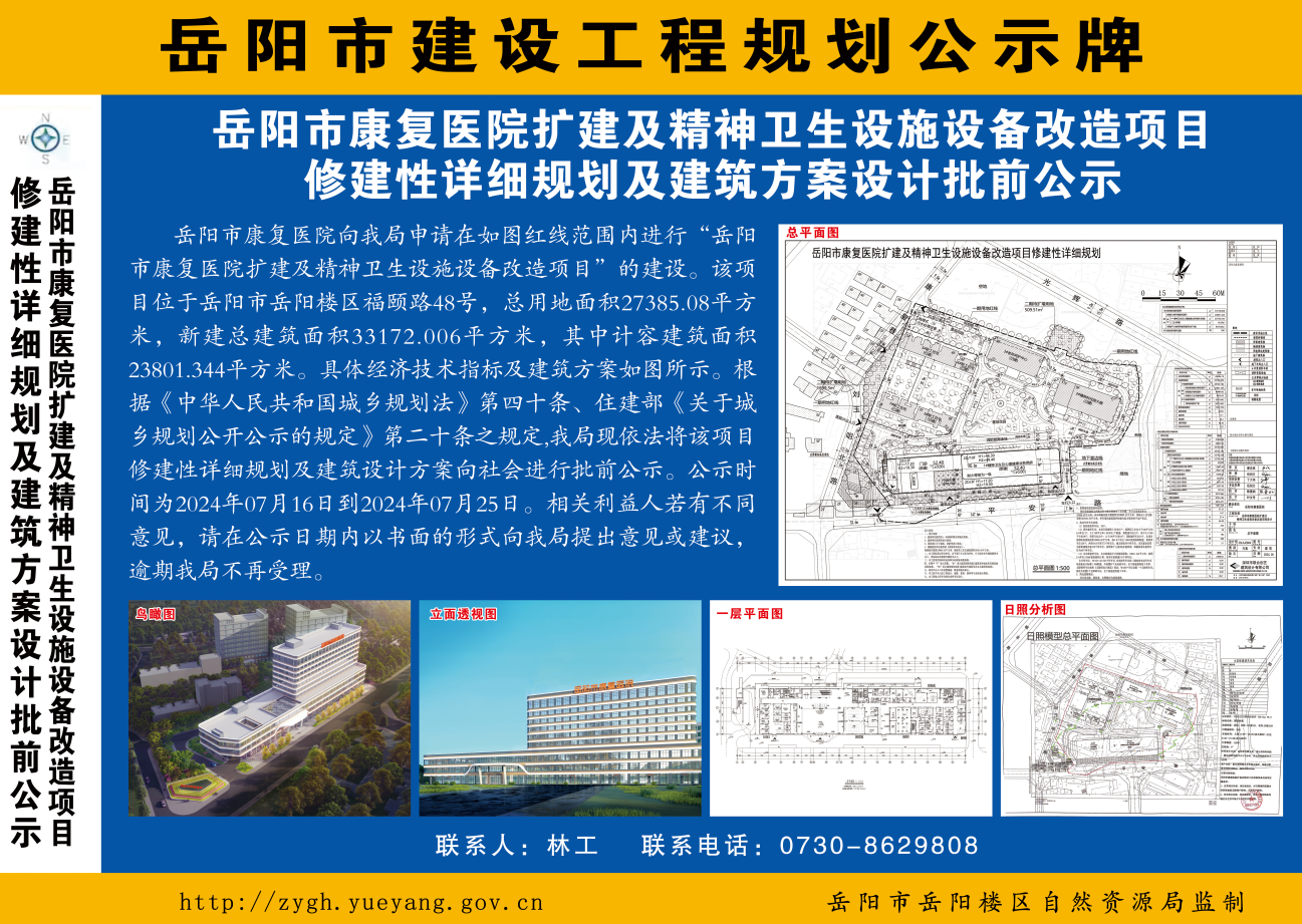 岳阳市康复医院扩建及精神卫生设施设备改造项目修建性详细规划及建筑方案批前公示