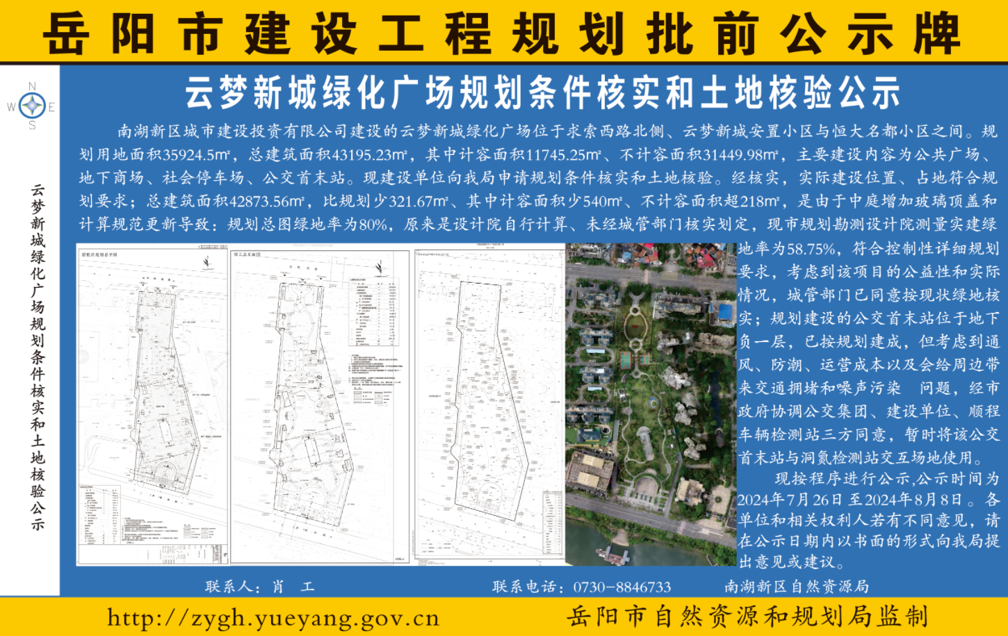 云梦新城绿化广场规划条件核实和土地核验公示