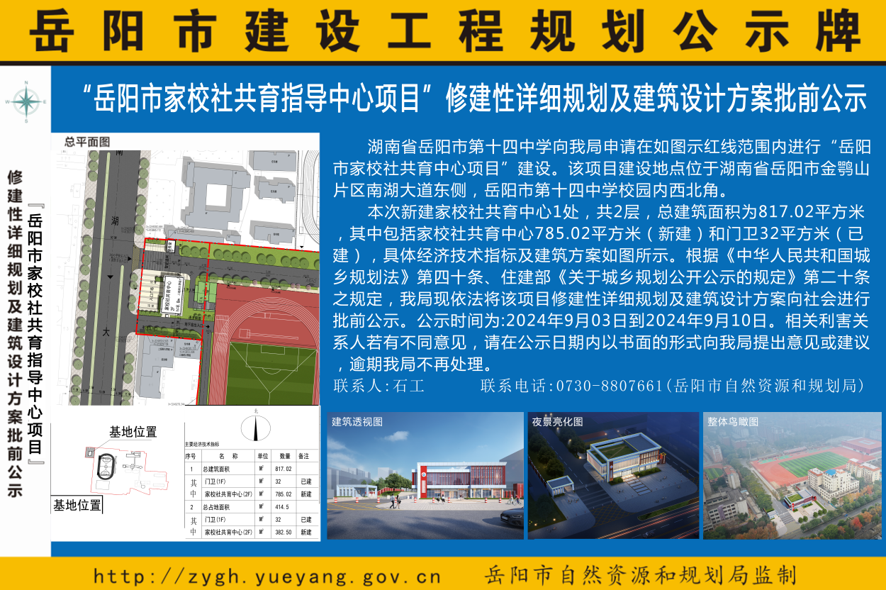 "岳阳市家校社共育指导中心项目"修建性详细规划及建筑设计方案批前公示