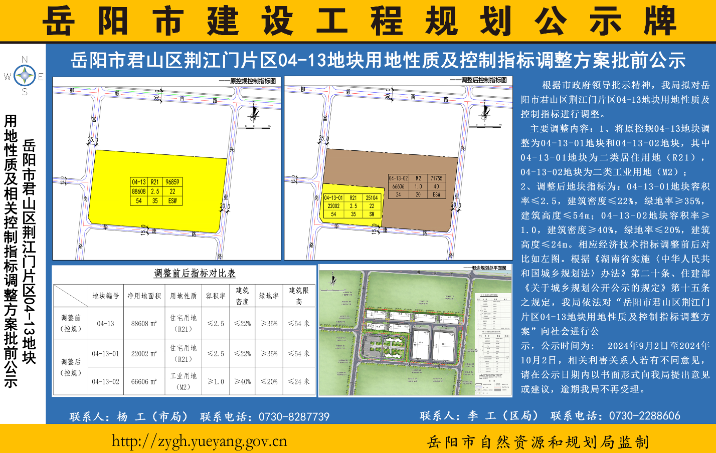 岳阳市荆江门片区04-13地块用地性质及控制指标调整方案批前公示