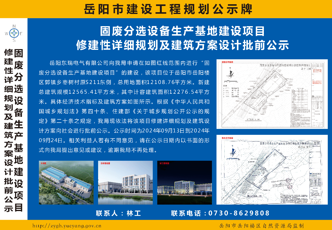 固废分选设备生产基地建设项目修规及建筑设计方案批前公示