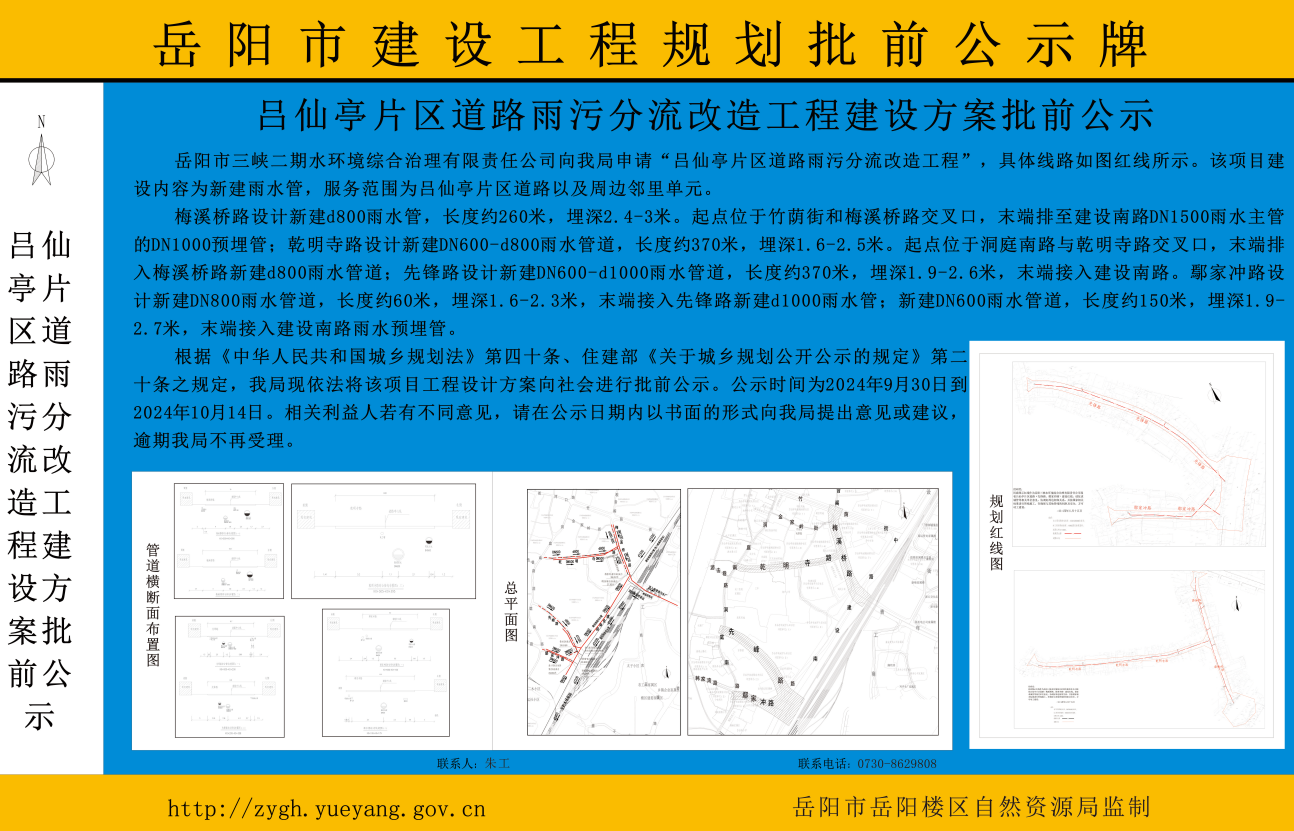 吕仙亭片区道路雨污分流改造工程建设方案批前公示