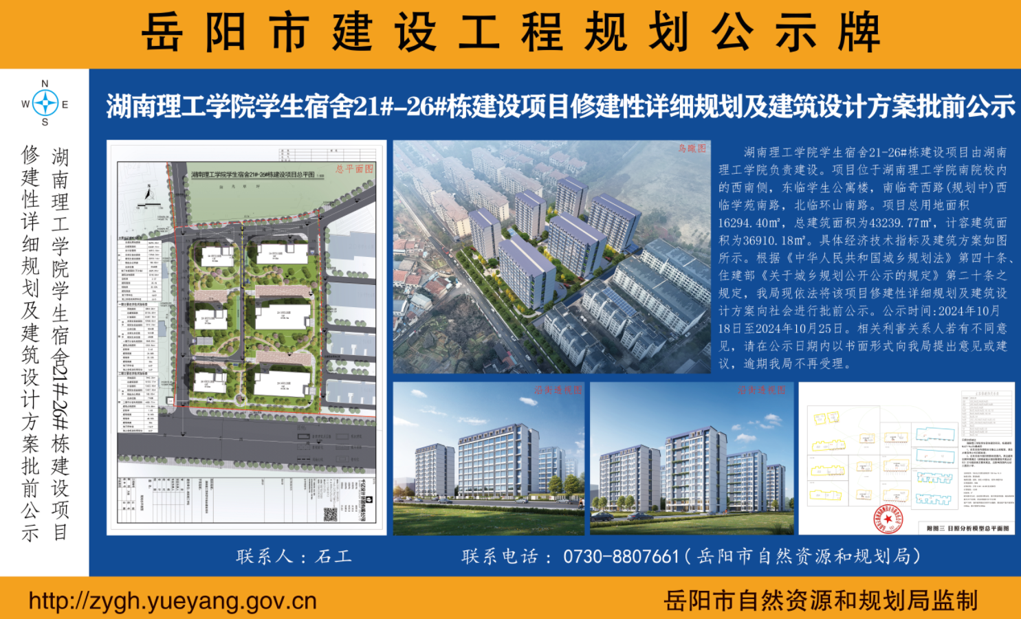 湖南理工学院学生宿舍21#-26#栋建设项目修建性详细规划及建筑设计方案批前公示