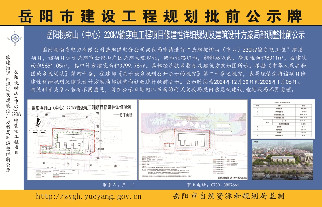 岳阳桃树山(中心)220kV输变电工程项目修建性详细规划及建筑设计方案局部调整批前公示