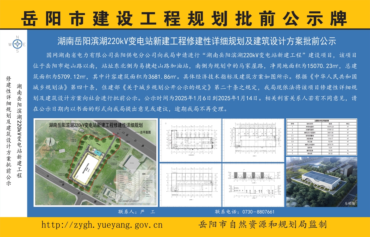 湖南岳阳滨湖220kV变电站新建工程修建性详细规划及建筑设计方案批前公示