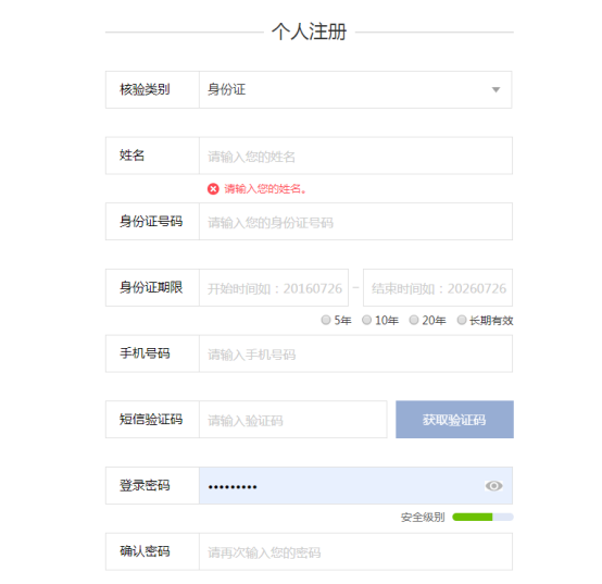 8、在弹出的注册页面中填入注册信息,具体内容如下: