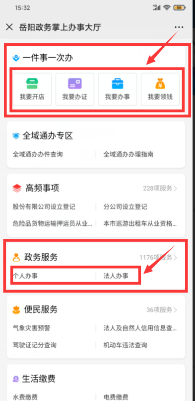 13、点击【个人服务】或【法人服务】【部门服务】专栏,根据自身需求选择办理事项。
