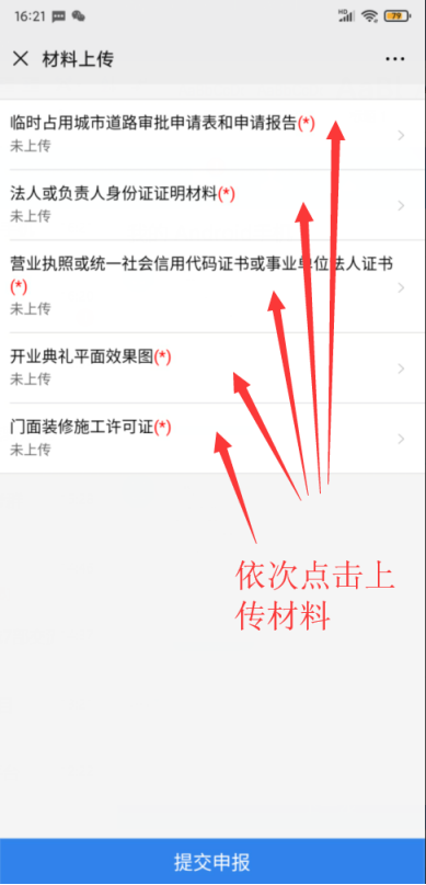 15、点击【在线办理】后填写基本信息,根据政务服务事项办事指南中所需的各个申报材料,上传电子化的申报材料。
