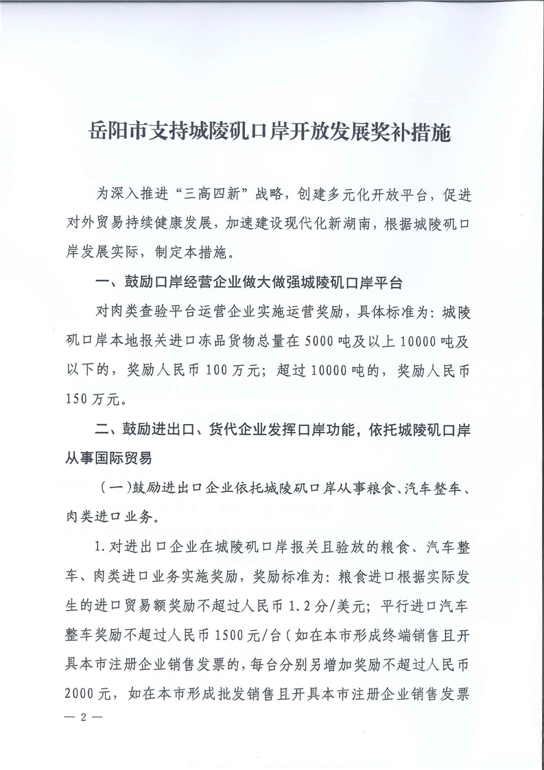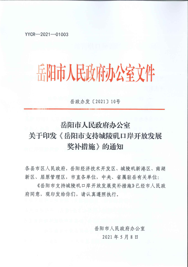 关于印发《岳阳市支持城陵矶口岸开放发展奖补措施》的通知