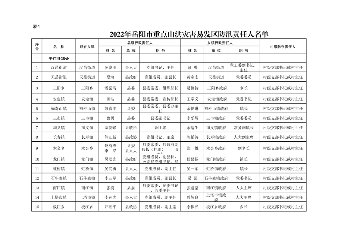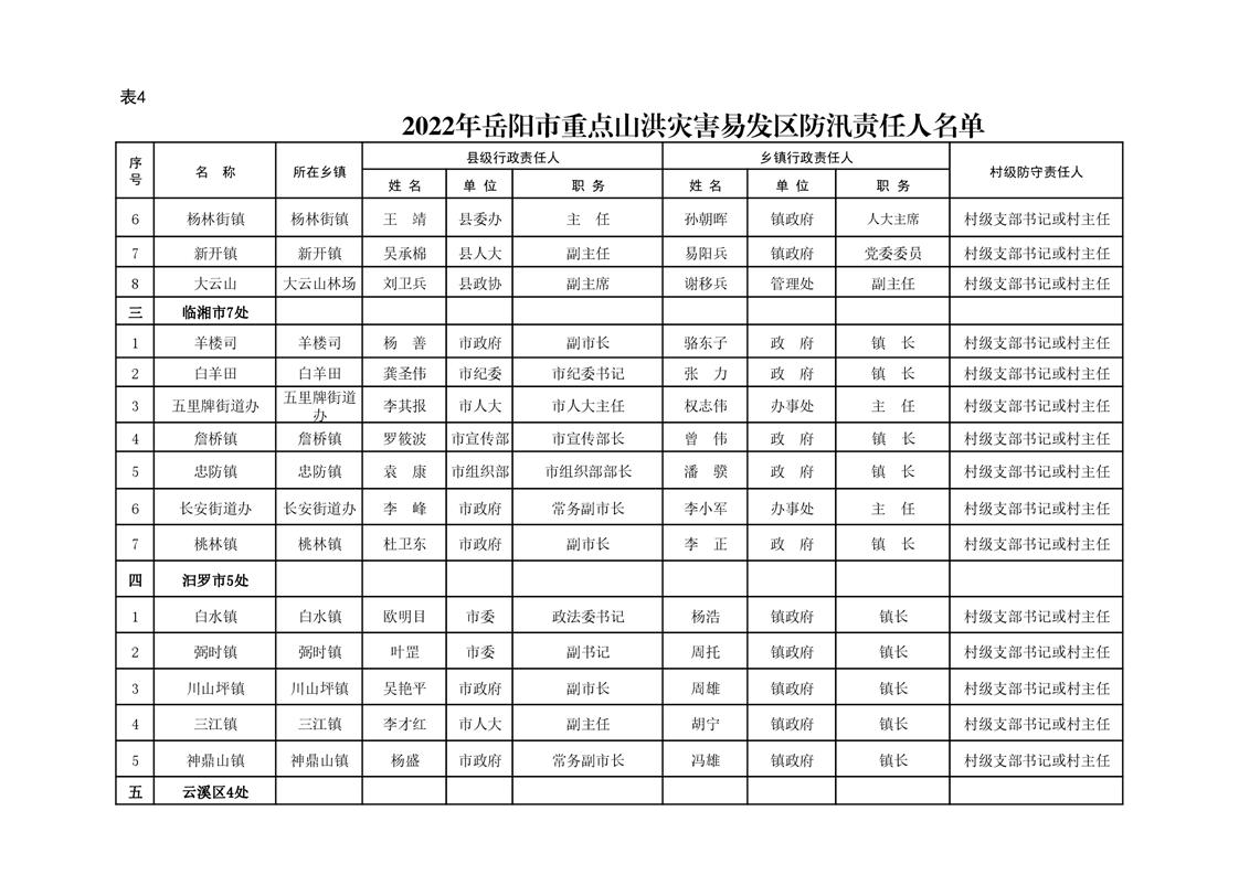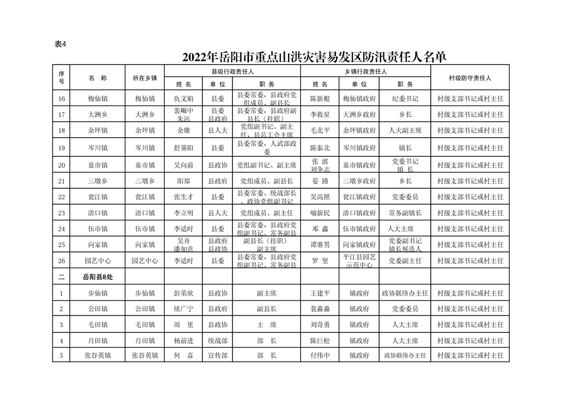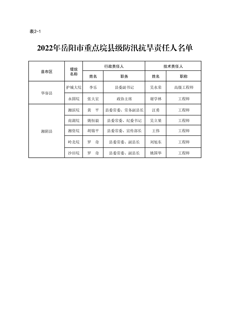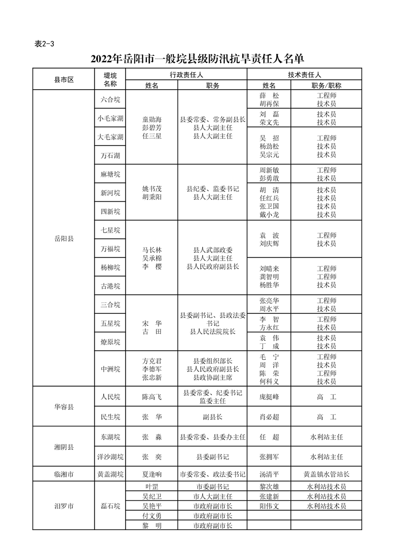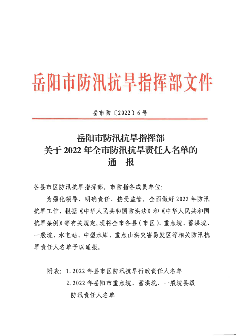 岳阳市防汛抗旱指挥部关于2022年全市防汛抗旱责任人名单的通报