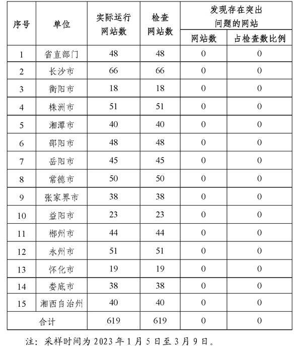湖南省政务管理服务局关于2023年第一季度全省政府网站与政务新媒体检查情况的通报