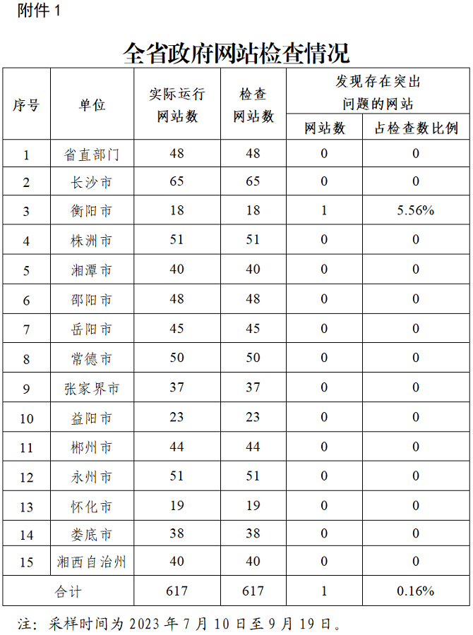 湖南省政务管理服务局关于2023年第三季度全省政府网站与政务新媒体检查情况的通报