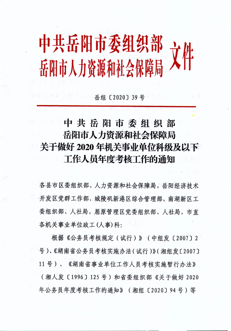 关于做好2020年机关事业单位科级及以下工作人员年度考核工作的通知