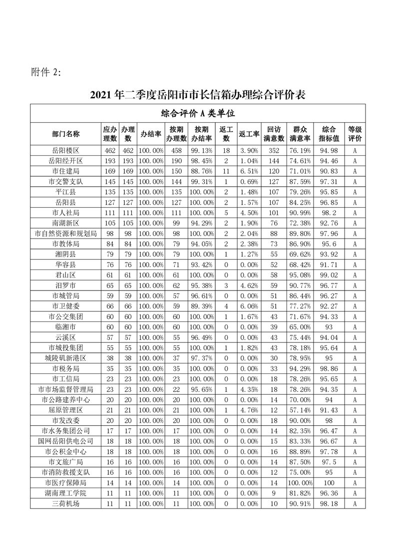 2021年二季度12345热线和市长信箱运行办理情况通报