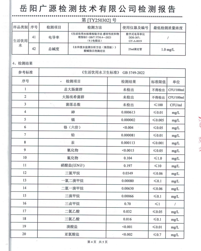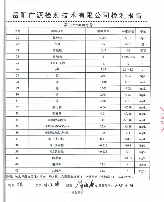 2025年3月岳阳市水务集团管网水水质检测月报表
