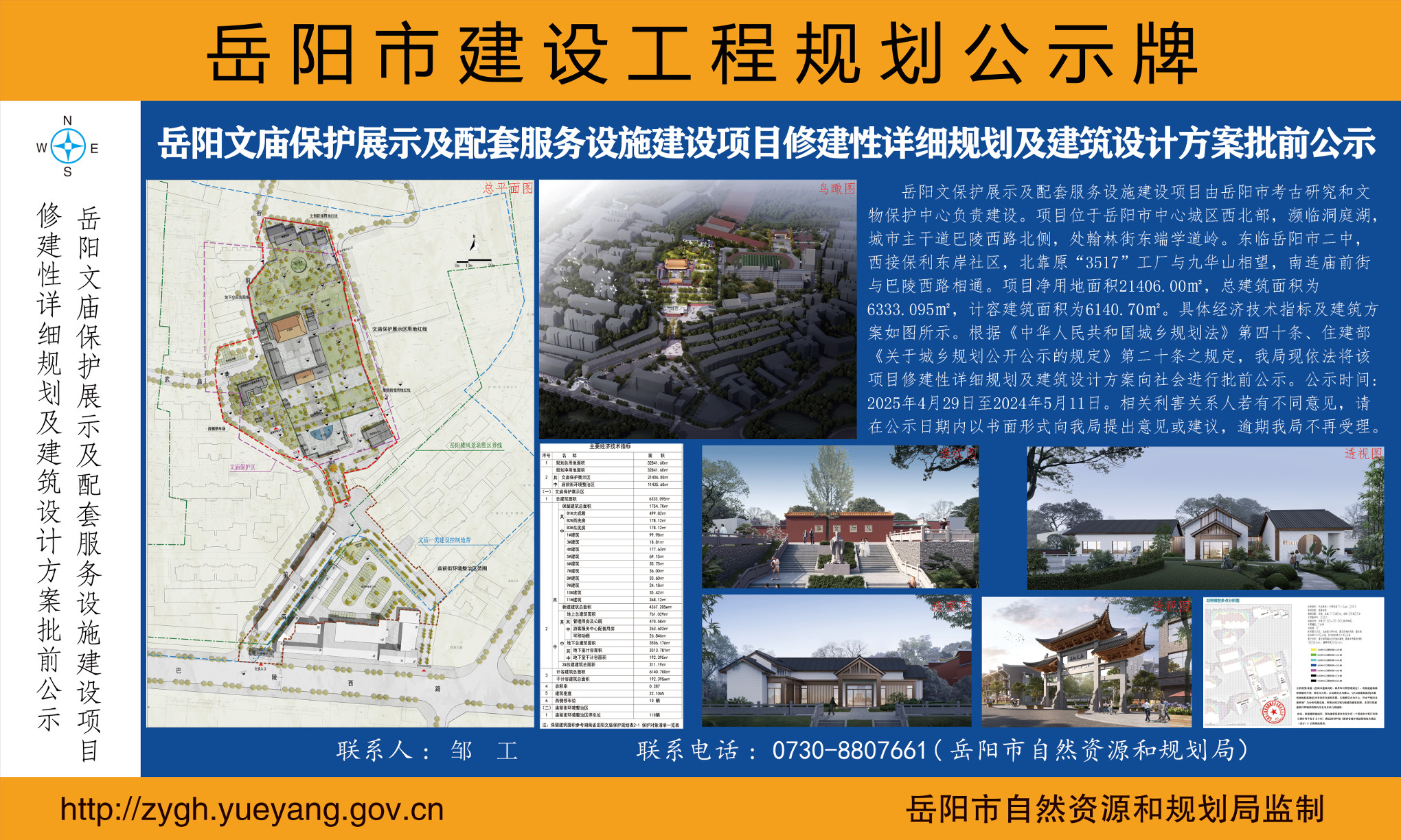 岳阳文庙保护展示及配套服务设施建设项目修建性详细规划及建筑设计方案批前公示