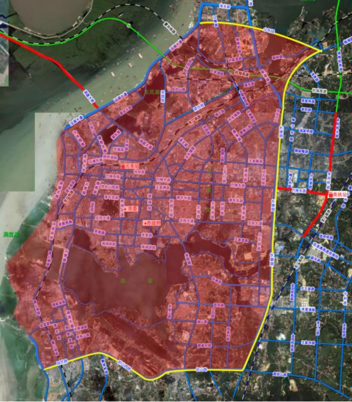 1.岳阳楼区和南湖新区:G107以西、赶山路-黄河大道以北、洞庭湖水岸以东、北环线以南合围区域(不含赶山路-黄河大道、北环线、G107),以及金凤桥路、巴陵东路、洞庭湖大桥。