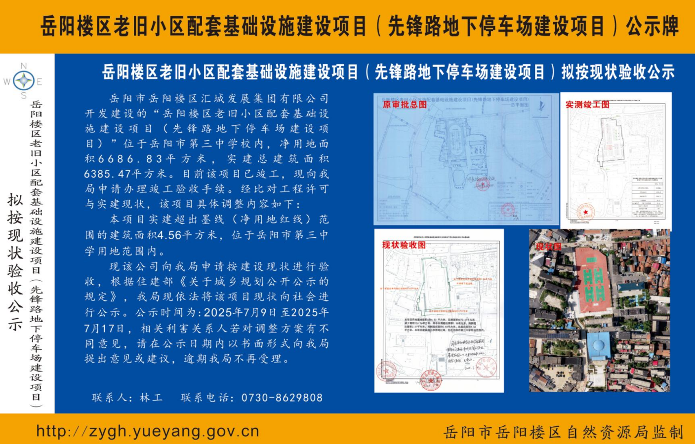 岳阳楼区老旧小区配套基础设施建设项目(先锋路地下停车场建设项目)公示牌