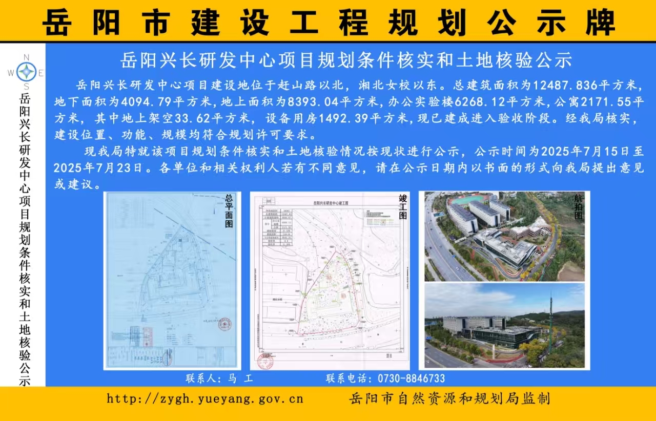 岳阳兴长研发中心项目规划条件核实和土地核验公示