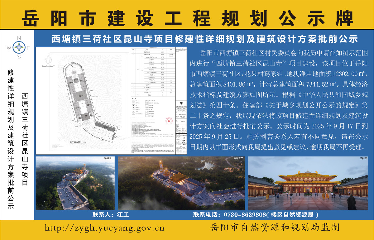 西塘镇三荷社区昆山寺项目修建性详细规划及建筑设计方案批前公示