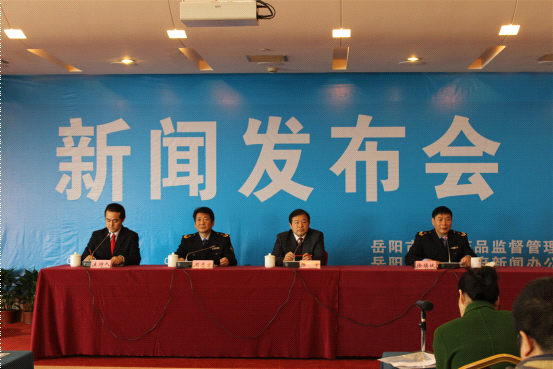 2016年12月6日上午,岳阳市政府新闻办组织召开岳阳市食品药品“四查”行动新闻发布会。会议发布了2016年岳阳市食药监局食品药品“四查”行动的开展情况和工作成效,通报了食品药品监管领域稽查打假工作成果。岳阳市政府副秘书长陈峰、市政府新闻办主任赵泉、市食品药品监管局副局长周志宏、徐焕斌等领导出席发布会,新华社、湖南日报、中国医药报等7家中央、省驻岳新闻机构和岳阳日报、岳阳电视台等7家市级媒体的记者参加了发布会。