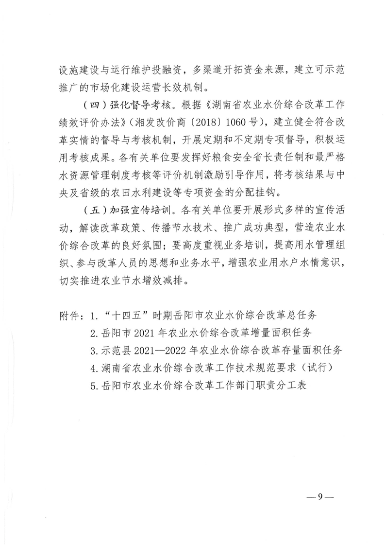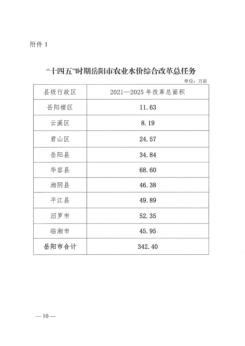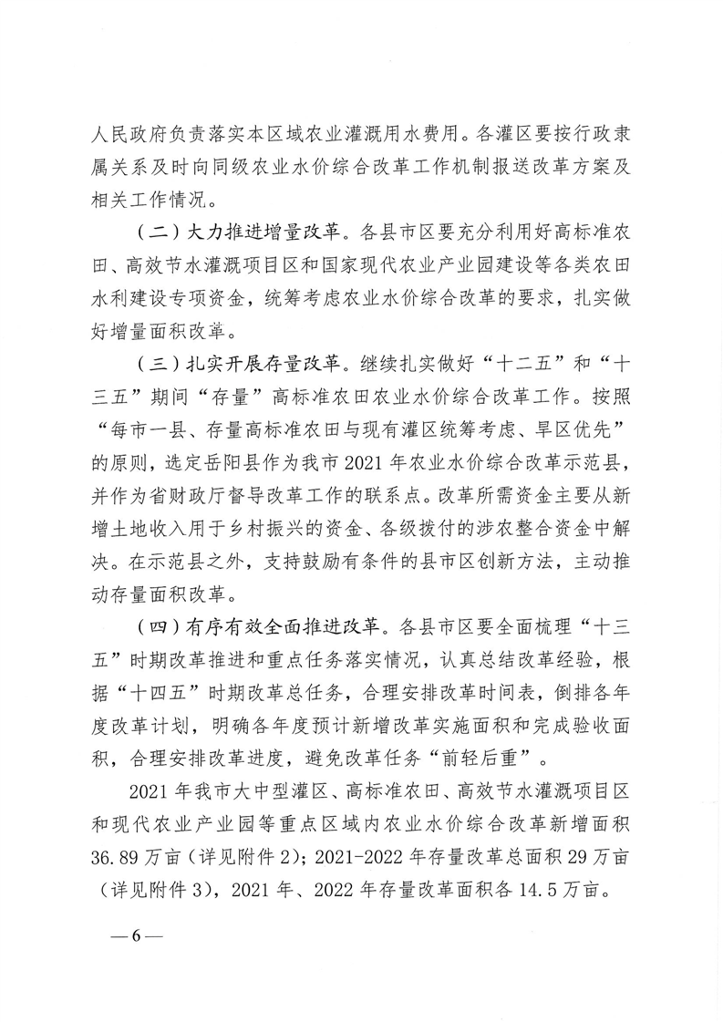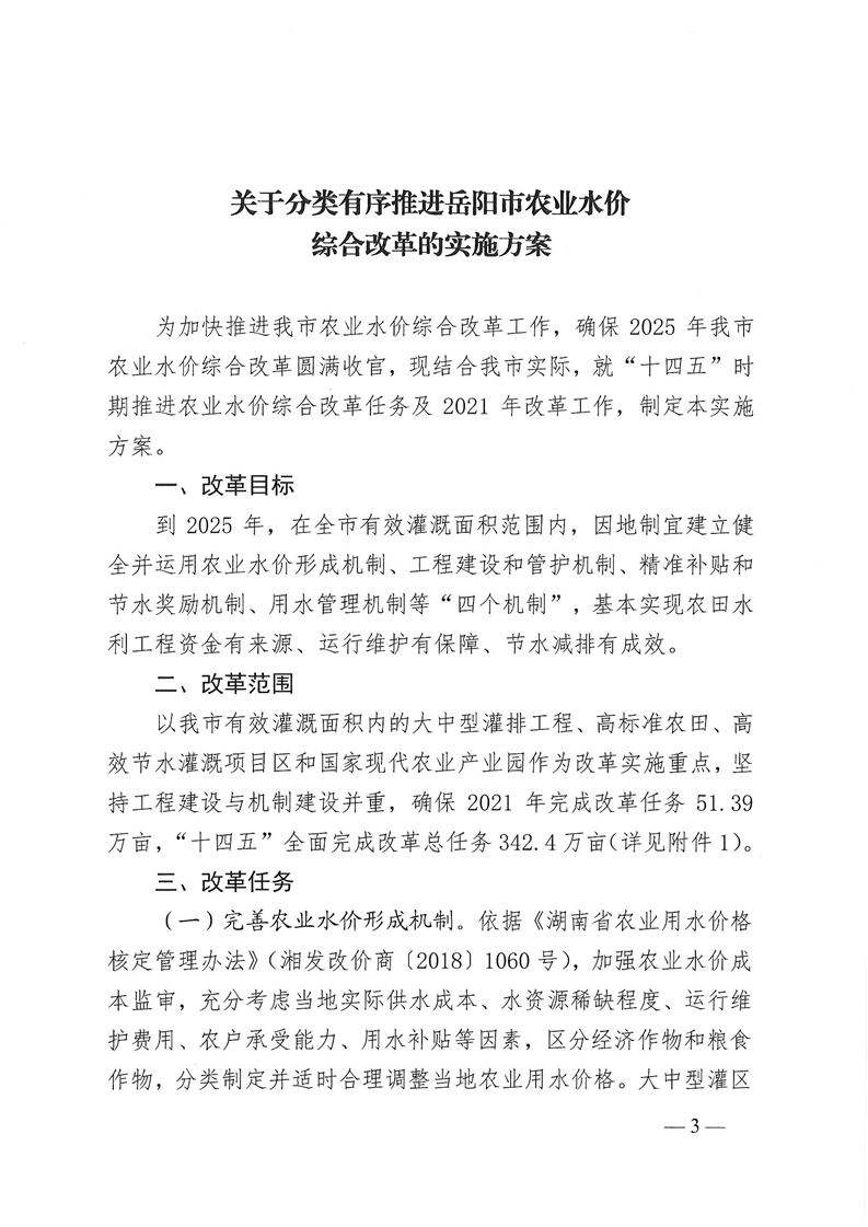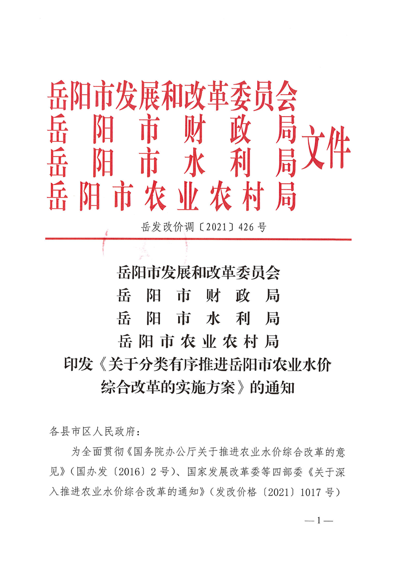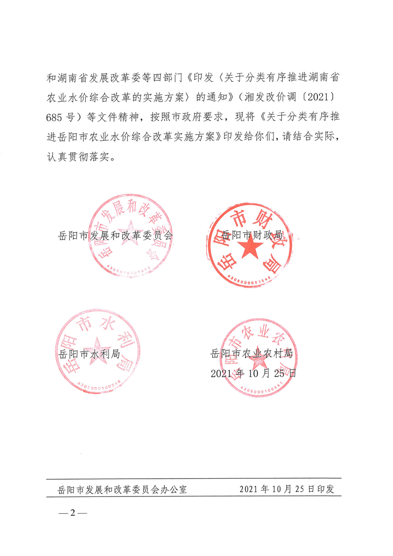 关于印发《关于分类有序推进岳阳市农业水价综合改革的实施方案》的通知