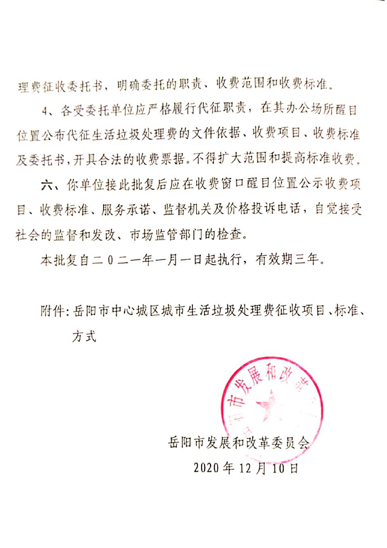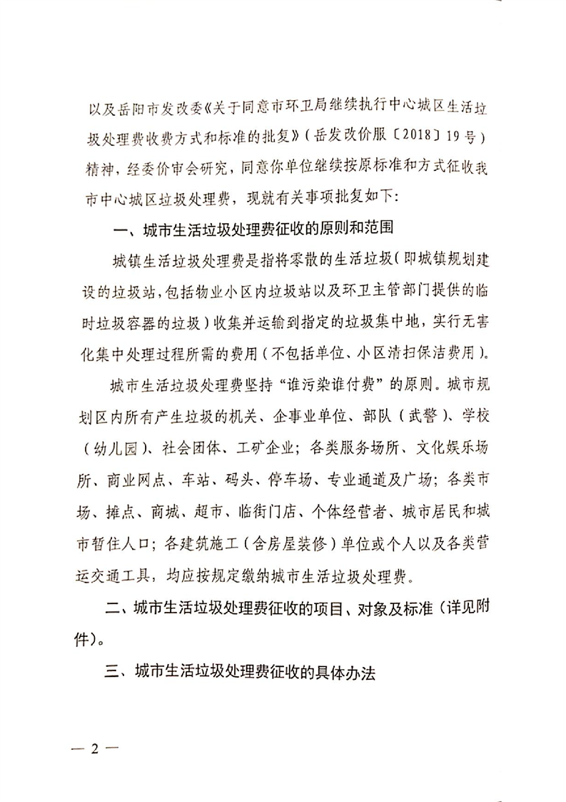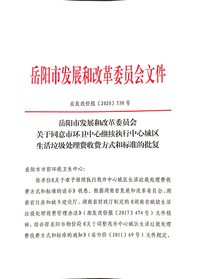 关于同意市环卫中心继续执行中心城区生活垃圾处理费收费方式和标准的批复