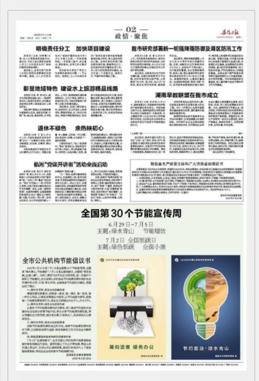 6月29日至7月5日是第30个全国节能宣传周,主题为“绿水青山,节能增效”。宣传周期间,岳阳市机关事务管理局与国管局、省管局同步开展形式多样、内容丰富的公共机构节能宣传活动,动员全市各公共机构聚焦能源资源节约,围绕节约型机关创建、推行绿色办公、全面实施生活垃圾分类重点内容,发挥示范、引领、带头作用。