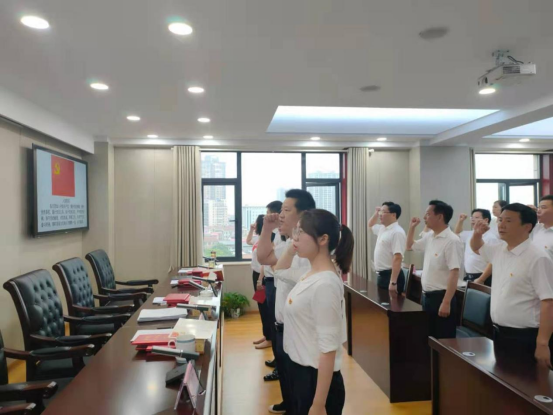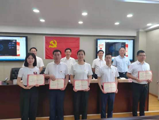 大会在庄严的国歌声中拉开帷幕,全体参会人员起立,奏唱国歌。随后,4名新党员面向鲜红的党旗,高举右手举行入党宣誓,全体老党员重温了入党誓词。会议通报表彰了5名优秀共产党员、2名共产党员岗位能手、2名优秀党务工作者、5名“学习强国”学习先进个人和5名“百舸争流˙千帆竞发”党史知识竞赛先进个人。