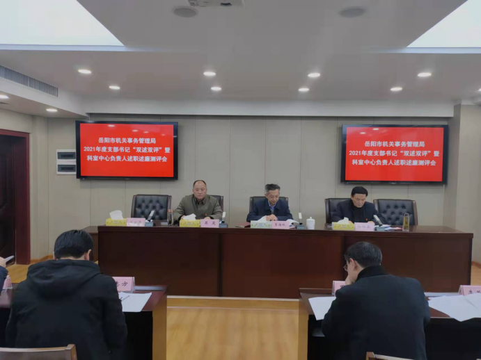 2022年1月21日,岳阳市机关事务管理局召开2021年度党支部书记“双述双评”暨科室中心负责人述职述廉会议。