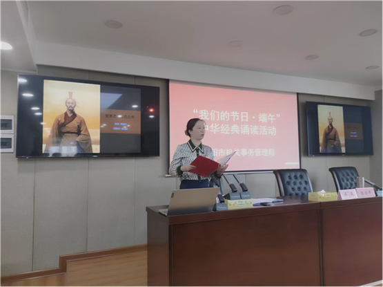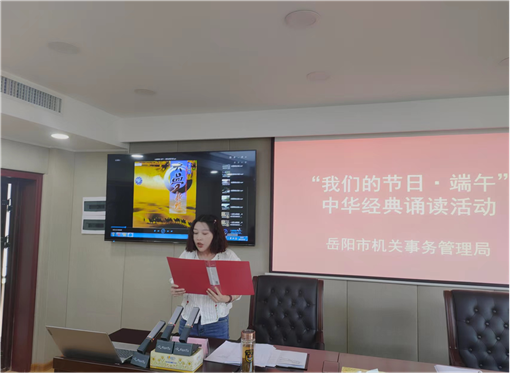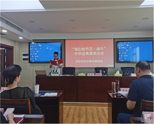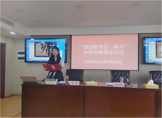 诵读古今经典,弘扬爱国情怀。在传统佳节----端午节来临之际,5月31日,岳阳市机关事务管理局组织开展“我们的节日·端午”中华经典诵读活动,以诵读爱国主义名篇佳作的形式,让机关干部亲身感受端午文化,增强爱党爱国情怀和民族自豪感。