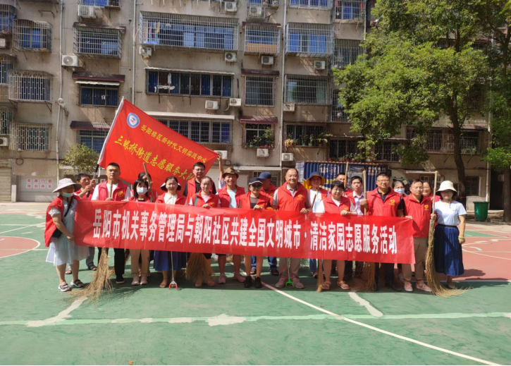 8月15日下午,岳阳市机关事务管理局与朝阳社区联合开展“共建文明城市·清洁家园”志愿服务活动。