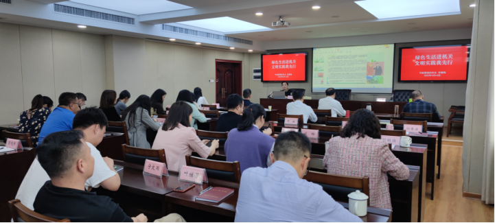 (图为“绿色生活进机关”专题辅导讲课现场)
