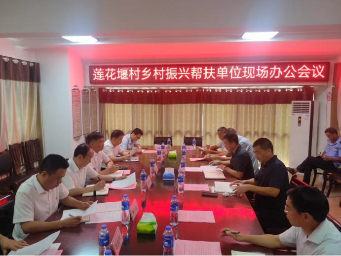 7月4日,岳阳市机关事务管理局、湖南银行岳阳分行、岳阳市第十四中学等三家后盾单位到华容县三封寺镇莲花堰村召开乡村振兴驻村工作现场办公会。