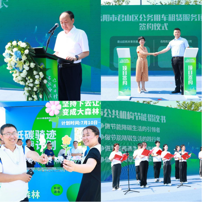 启动仪式上,市机关事务管理局党组书记、局长陈念军宣读了我市全国机关事务工作先进集体获评单位、节约型机关及2022年湖南省公共机构节约型示范单位获评名单,与会领导对节约型机关代表和2022年省级公共机构节约型示范单位进行授牌;君山区政府与新能源汽车合作项目举行了签约仪式。
