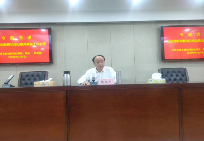 为深入学习贯彻习近平新时代中国特色社会主义思想,推动新时代新征程机关事务工作创新发展,10月24日,岳阳市机关事务管理局党组书记、局长陈念军以“运用党的创新理论推进机关事务工作发展”为主题给全体党员干部上了一堂生动的党课。