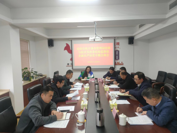 为进一步推动局党组全面从严治党主体责任和派驻纪检监察组监督责任贯通衔接,深入推进全面从严治党向纵深发展,11月29日下午,市机关事务管理局党组与市纪委监委驻发改委纪检监察组召开全面从严治党专题会商会暨清廉单元建设推进会,局党组书记汤露主持会议,派驻纪检监察组组长高峰出席会议,两位副组长和机关事务管理局班子成员、科室和中心负责人参加会议。