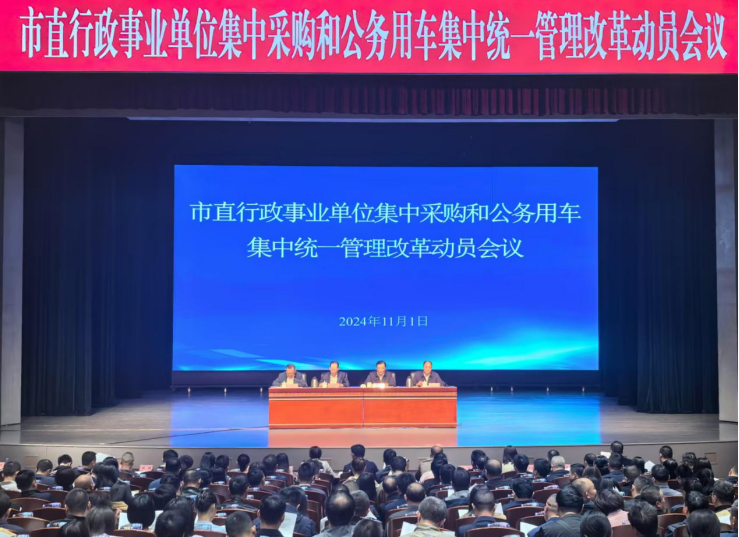 (市直行政事业单位集中采购和公务用车集中统一管理改革动员会议现场)