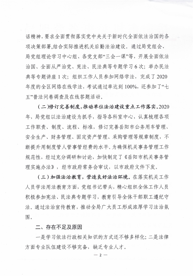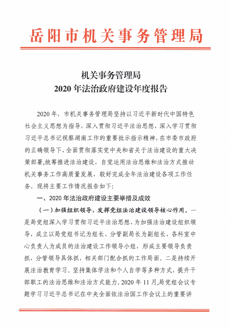 岳阳市机关事务管理局2020年法制政府建设年度报告
