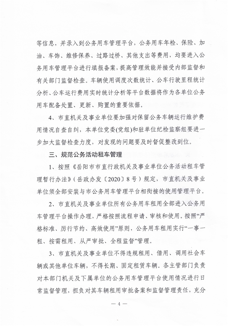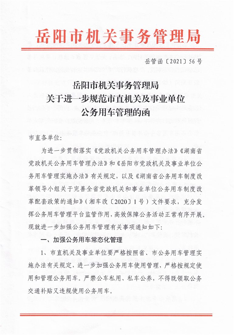 岳阳市机关事务管理局关于进一步规范市直机关及事业单位公务用车管理的函